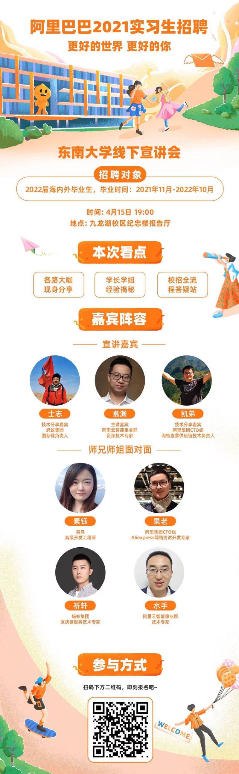 全部嘉宾均为校友阵容,您关心的校招话题,都将在线下宣讲会中获得最全面的解答!