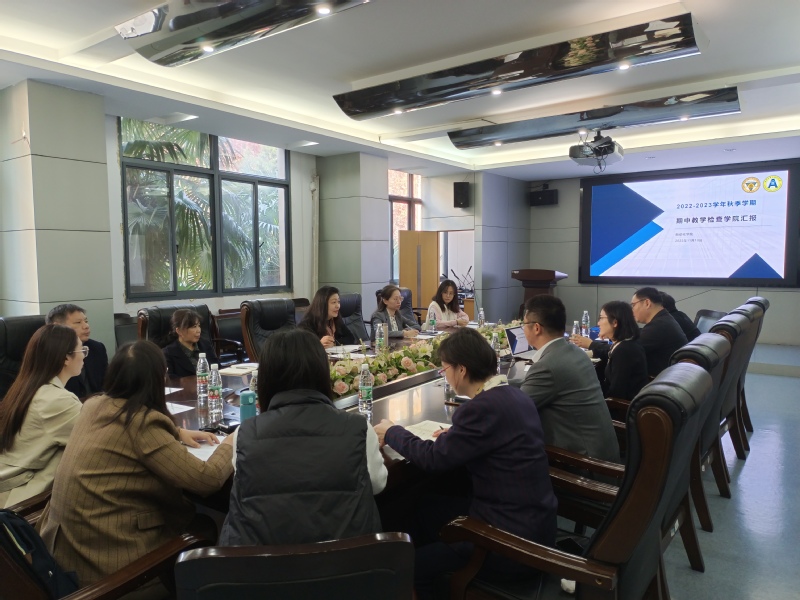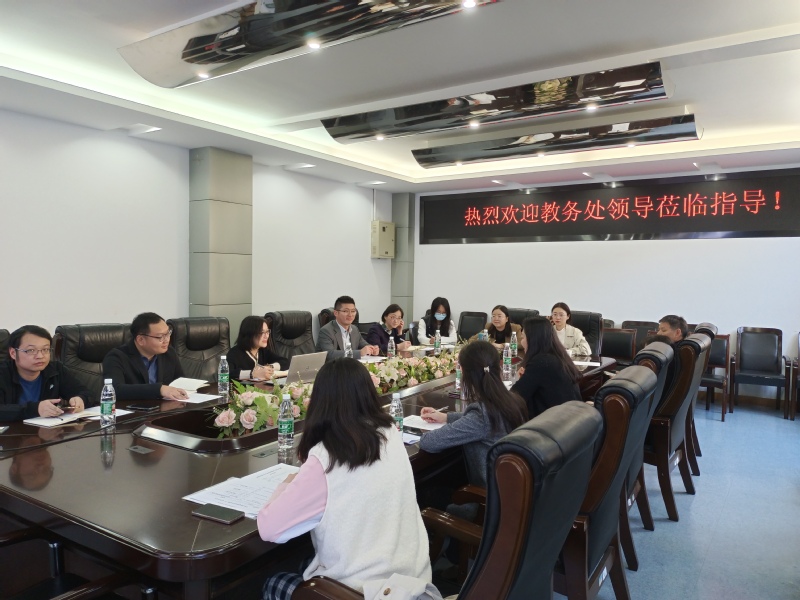 张院长首先汇报了学院2022-2023学年秋季学期期中教学检查的情况,随后,双方就本学期教学情况、上学期期末考核、实践教学、本科导师制、教学督导、学业指导分中心、教育思想大讨论等方面做了进一步的交流与沟通,之后教务处对全英文课程、课程思政、教材建设与选用等方面进行了专项检查。
