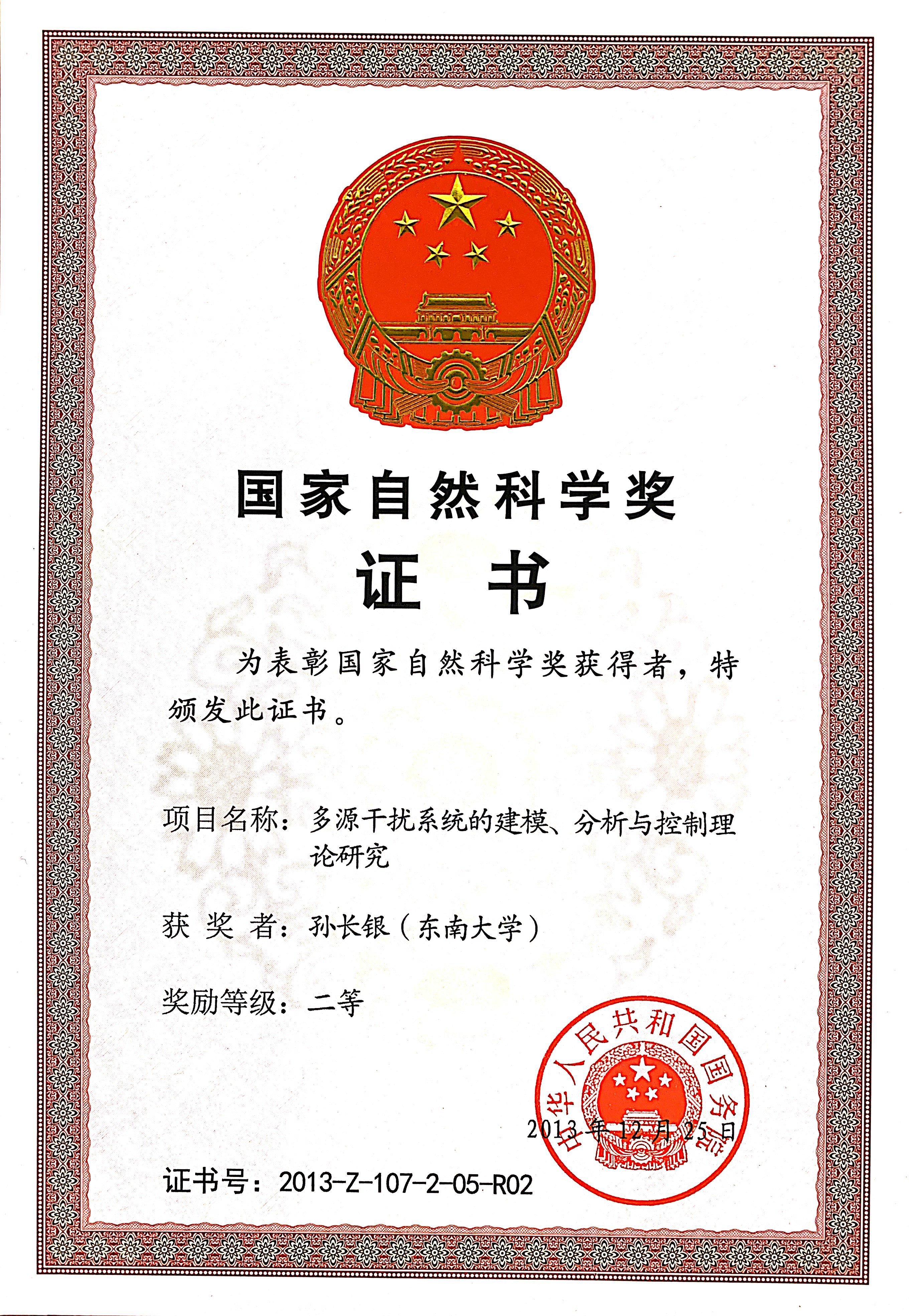 2013年:12月,成人论坛 孙长银教授与北京航空航天大学的郭雷教授共建的课题组项目“多源干扰系统的建模、分析与控制理论研究”荣获国家自然科学二等奖。