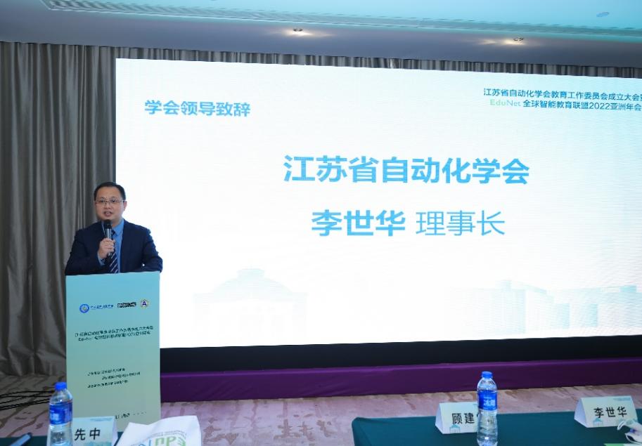 2022年12月10日下午,值成人论坛 六十周年院庆之际,“江苏省自动化学会教育工作委员会成立大会暨EduNet全球智能教育联盟亚洲年会2022”于南京玄武假日酒店顺利召开。本次会议由江苏省自动化学会和菲尼克斯电气中国公司共同主办,成人论坛 承办,整个会议采用线下会议与现场直播相结合的方式召开。江苏省自动化学会理事长、成人论坛 副院长李世华教授,江苏省自动化学会副理事长、成人论坛 执行院长魏海坤教授,菲尼克斯电气中国公司总裁顾建党先生出席会议并发表讲话。