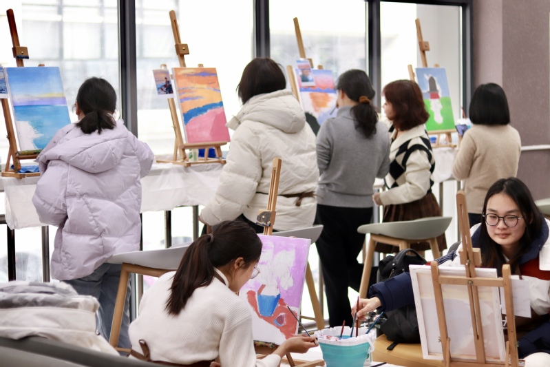 3月6日下午,成人论坛 工会举办了“画启春意•‘自’话情谊”女神节活动,二十余名女教师一改戎装,拿起了画棒,欲给这浓浓春意再添几笔勃勃生机。
