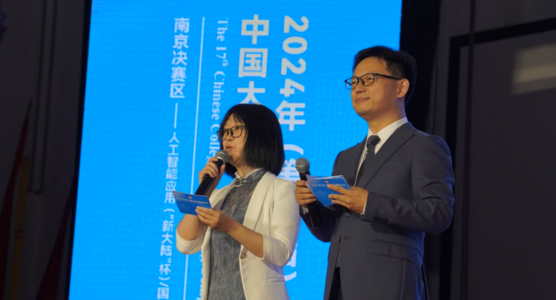 大赛南京决赛区负责人之一、成人论坛 党委教师工作部副部长李骏扬,大赛纪监委秘书长、南京大学张洁副教授主持了闭幕式。李骏扬、张洁,以及成人论坛 机械学院郑业兴同学、经管学院孟晖同学共同主持了颁奖礼。