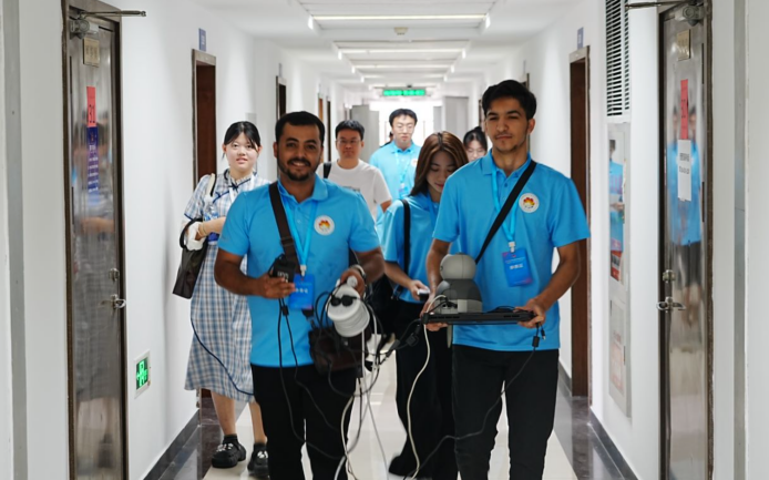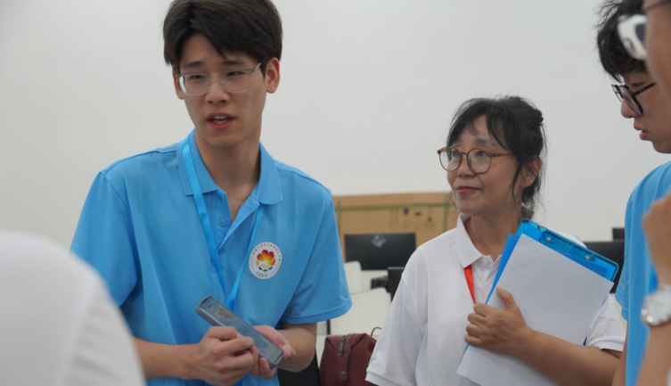 8月9日上午9:30,在评委会议之后,比赛正式打响。共5个人工智能挑战赛赛项在中心楼二楼进行了现场测试,另有10个作品答辩组在李文正楼五楼开展了作品答辩与评审工作。