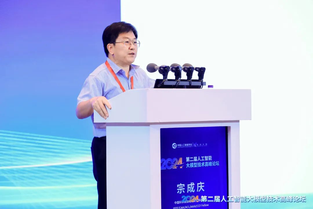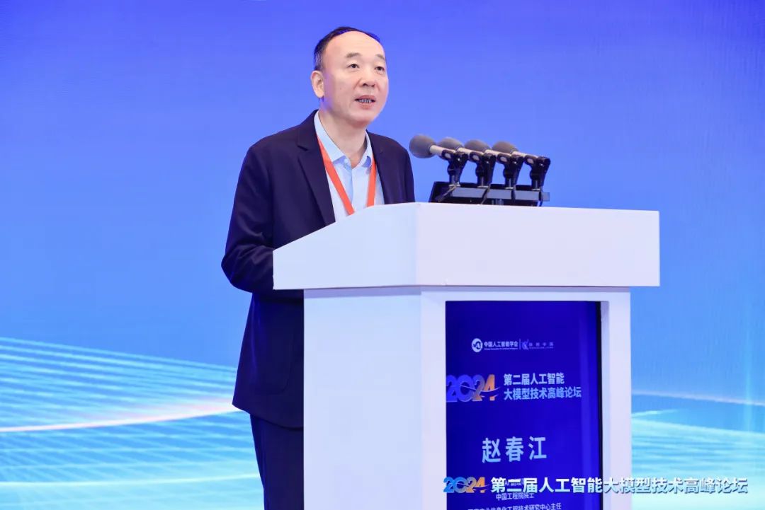 主论坛报告环节,CAAI副理事长、中国工程院院士赵春江,百度首席技术官王海峰,腾讯首席科学家张正友,中国科学院自动化研究所研究员宗成庆分别作学术报告,围绕大模型的基础研究、技术前沿、产业态势进行探讨,为未来的跨学科研究和各行业落地应用提供新思维。