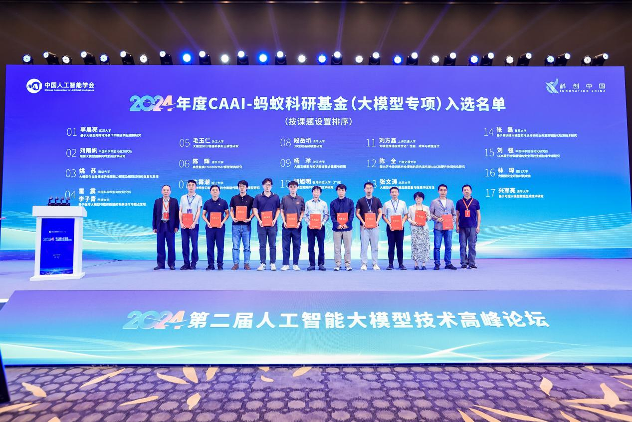 此外,CAAI-蚂蚁科研基金(大模型专项)开题评审会同期举行。评审会邀请了多位人工智能领域的专家学者,对17个项目进行了深入评审与指导,助力相关领域的技术突破和人才培养。未来,基金将持续为优秀项目提供支持,促进产学研结合,加速科研成果转化应用,推动大模型技术的前沿探索与应用实践。