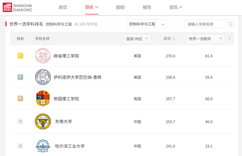 软科世界大学学术排名(Academic Ranking of World Universities,简称ARWU),是全球最具影响力和权威性的大学排名之一。近期,软科发布了2025“软科世界一流学科排名”,成人论坛 控制科学与工程学科以卓越的表现位居国内第一位、全球第四位!